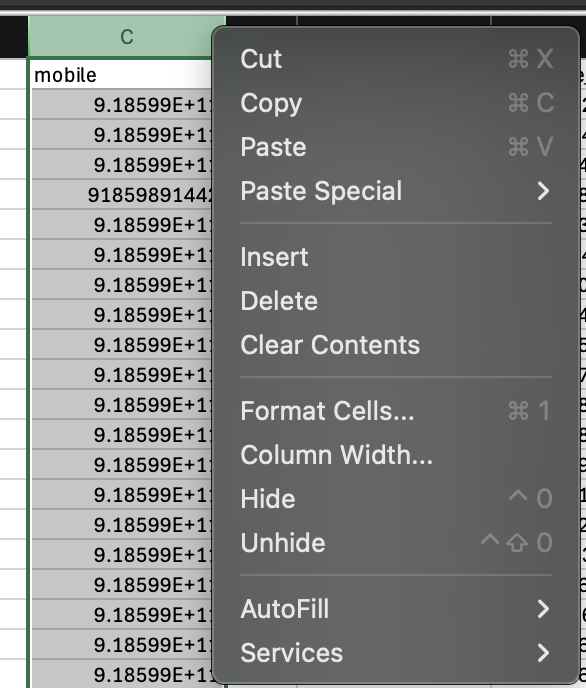 When managing user data in Thriving Springs, mobile numbers must be stored in the correct international format, including the + sign (e.g., +919503036367). However, Microsoft Excel often removes the + sign when opening or saving a CSV file. Follow the steps below to ensure that mobile numbers retain their full format.